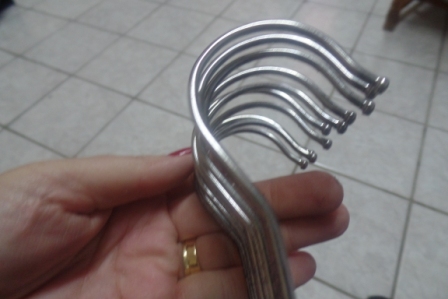 Com design hiper inteligente, vocês podem conferir nas fotos acima, como é possível manter devidamente pendurado o vestido/blusa, sem escorregar, devido às entrâncias perto da lateral, e tem suporte para calças, echarpes e o pequeno gancho que serve para pendurar gravatas ou cintos (pela fivela).